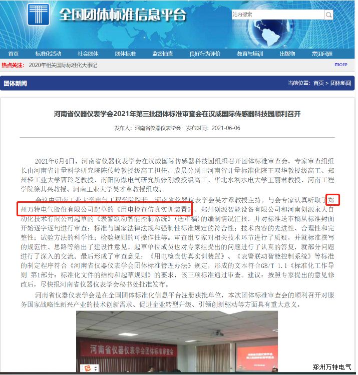 近日,由萬(wàn)特電氣制定的河南省儀器儀表學(xué)會(huì)團(tuán)體標(biāo)準(zhǔn)《用電檢查仿真實(shí)訓(xùn)裝置》T/HIS 006,于2021年6月11日發(fā)布,將于2021年7月10日實(shí)施。