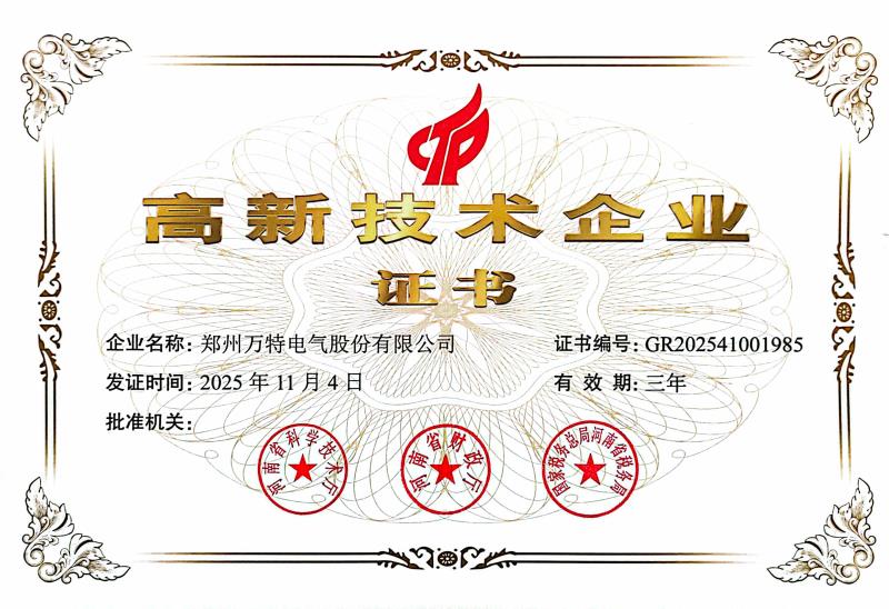 近日,萬特電氣傳來重磅喜訊!根據(jù)《關(guān)于組織開展2025年度高新技術(shù)企業(yè)申報工作的通知》(豫高企〔2025〕1 號)文件規(guī)定,河南省2025年第一批3160家擬認定高新技術(shù)企業(yè)名單完成公示及核定,萬特電氣憑借出眾的科研創(chuàng)新能力、精細化的產(chǎn)品制造能力和穩(wěn)定的品質(zhì)把控能力,繼2022年再次通過 “高新技術(shù)企業(yè)” 這一重量級榮譽資質(zhì)認證,相關(guān)認定證書已正式下發(fā),有效期三年。